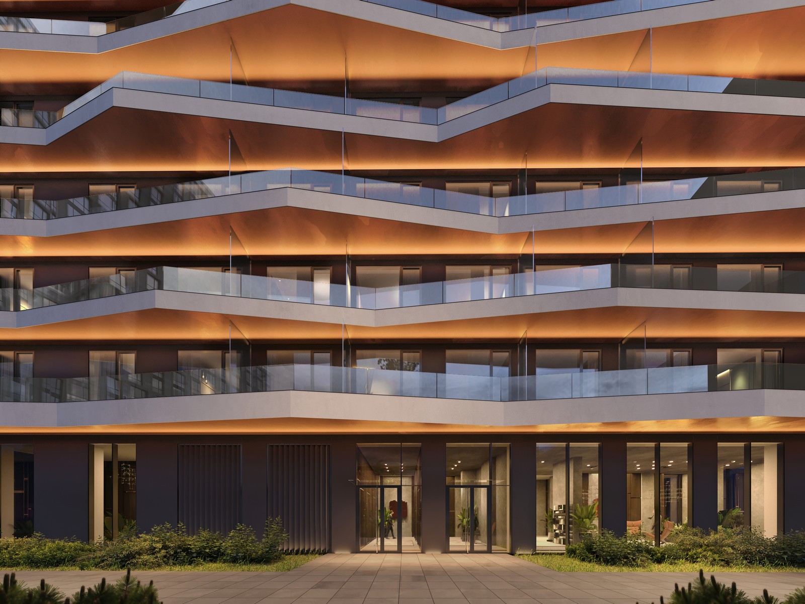 Архитектурная подсветка подчеркнет медные элементы фасада PRIDE